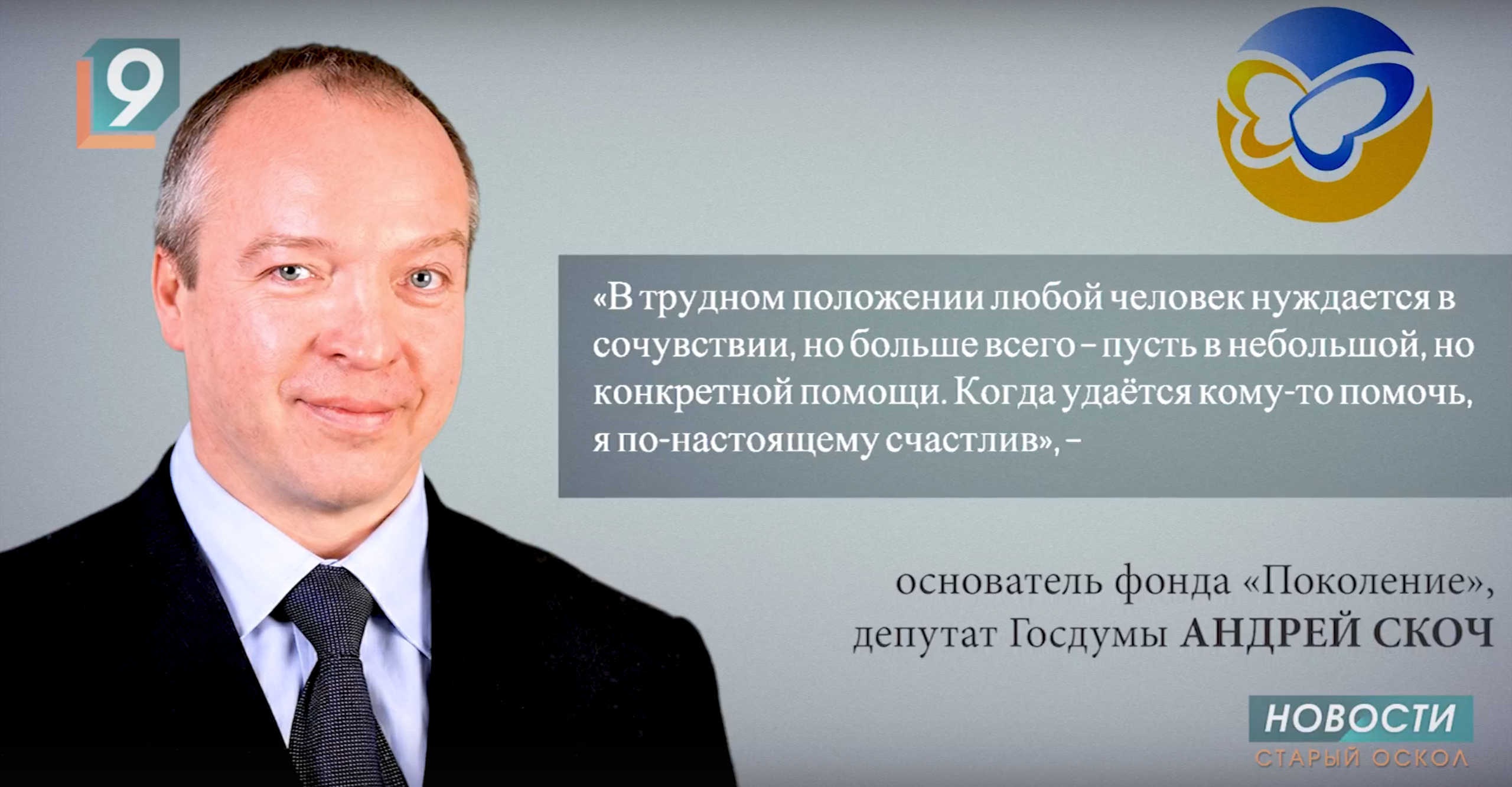 Юбилей отмечает сегодня основатель фонда «Поколение», депутат Государственной Думы Андрей Владимирович Скоч — человек с огромным сердцем, для которого нет чужой беды! Наш регион знает это имя уже три десятка лет. И все это время благотворительный фонд под руководством Андрея Скоча делом доказывает, что он рядом и всегда готов протянуть руку тем, кто в этом нуждается. По масштабу и объему оказываемой помощи в нашем регионе с «Поколением» не сравнится никто. Да и за пределами области вряд ли. К нему обращаются когда знают, больше не поможет никто. О направлениях работы фонда смотрите в нашем специальном репортаже.
