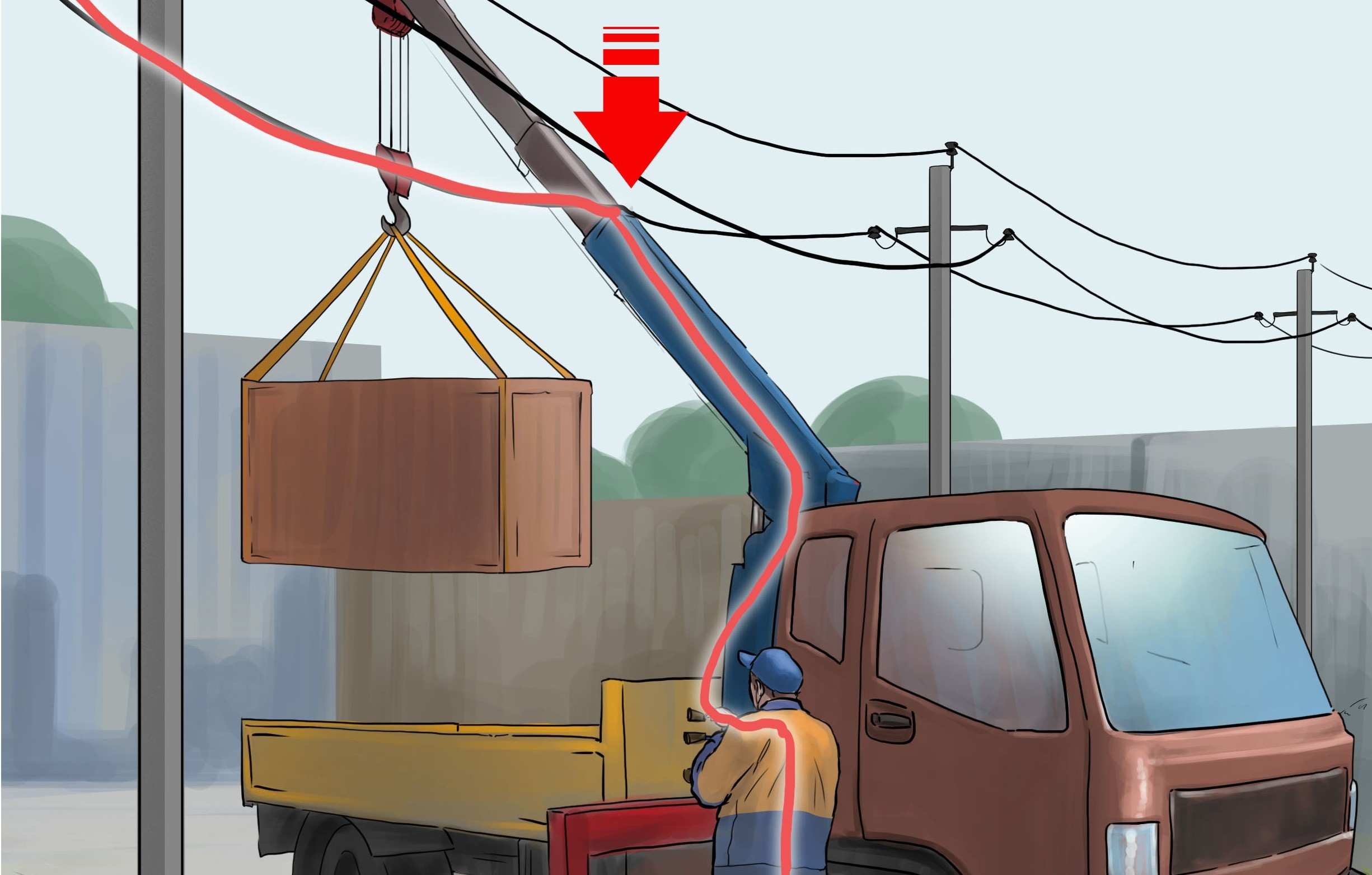 Прежде чем производить какие-либо работы при помощи машин и механизмов, убедитесь в отсутствии поблизости линий электропередачи.